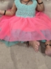 Combo of 1 frocks and 1 lehenga. One candy pink frock with woolen yoke and soft net bottom. One green net off shoulder frock from little muffet comes with headband. One silk lehenga top with dupatta. Fits for 0-8month old babies. All are very comfortable to wear, all of them worn just once for photoshoot